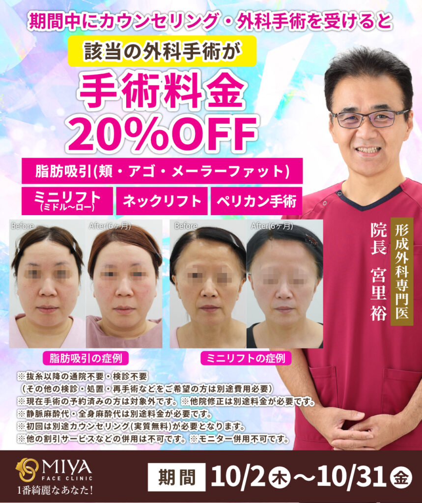 期間中に該当の外科手術のカウンセリングを受けられて手術を受けられると施術料が20%OFF!