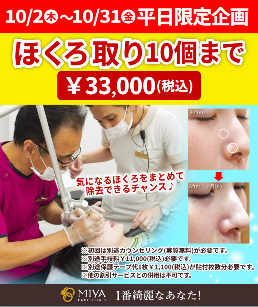 平日限定!ほくろ取り放題(10個まで)が¥33,000(税込)!