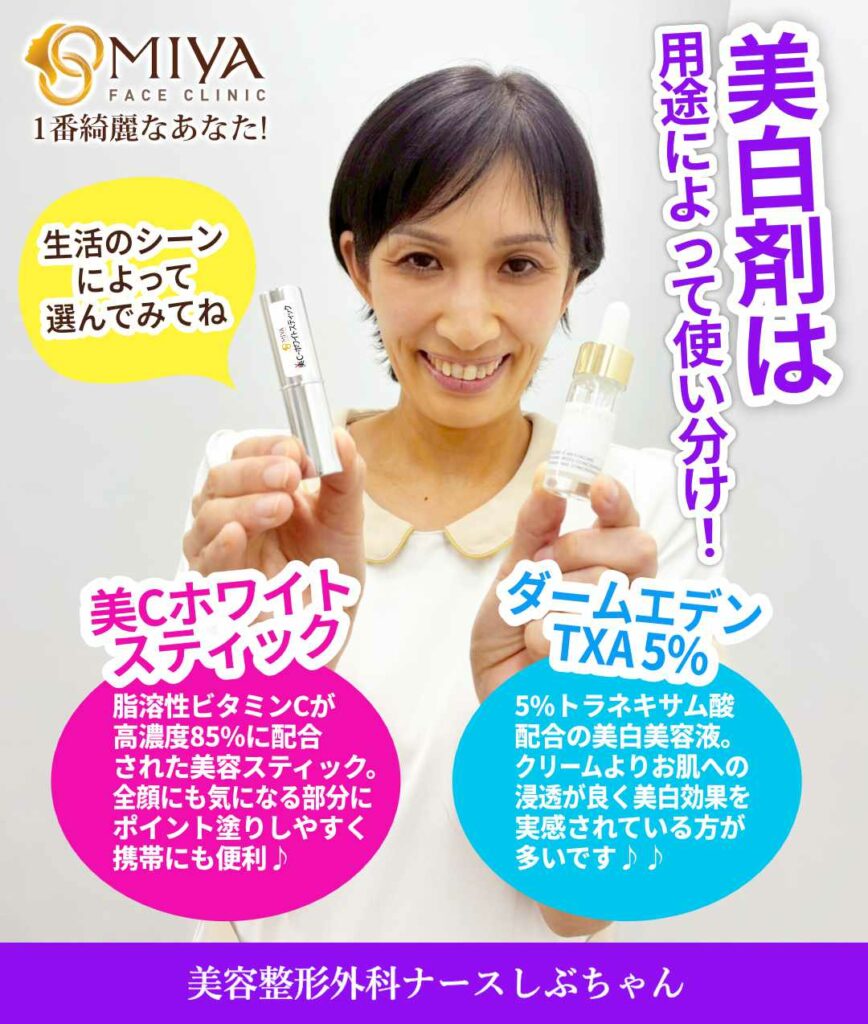 どちらも美白効果としては優れており,それぞれの特徴によってお選びいただけます。